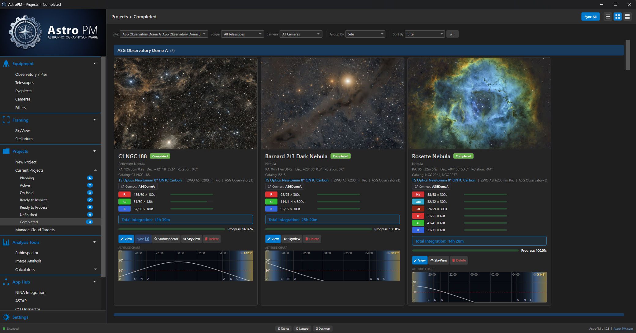 Every imaging target is a structured project that moves through a defined lifecycle. Track what you planned, what you captured, and what still needs to be done.
