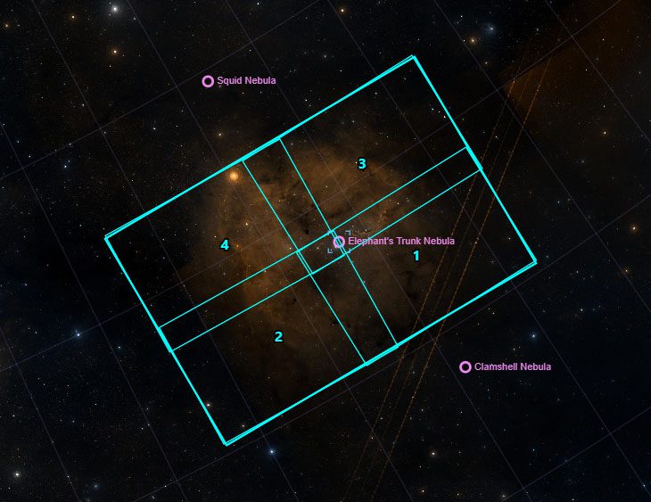 Switch scopes or cameras and the angular measurements update in real time, so you always know if a target will fit, need a mosaic, or leave empty sky around it.