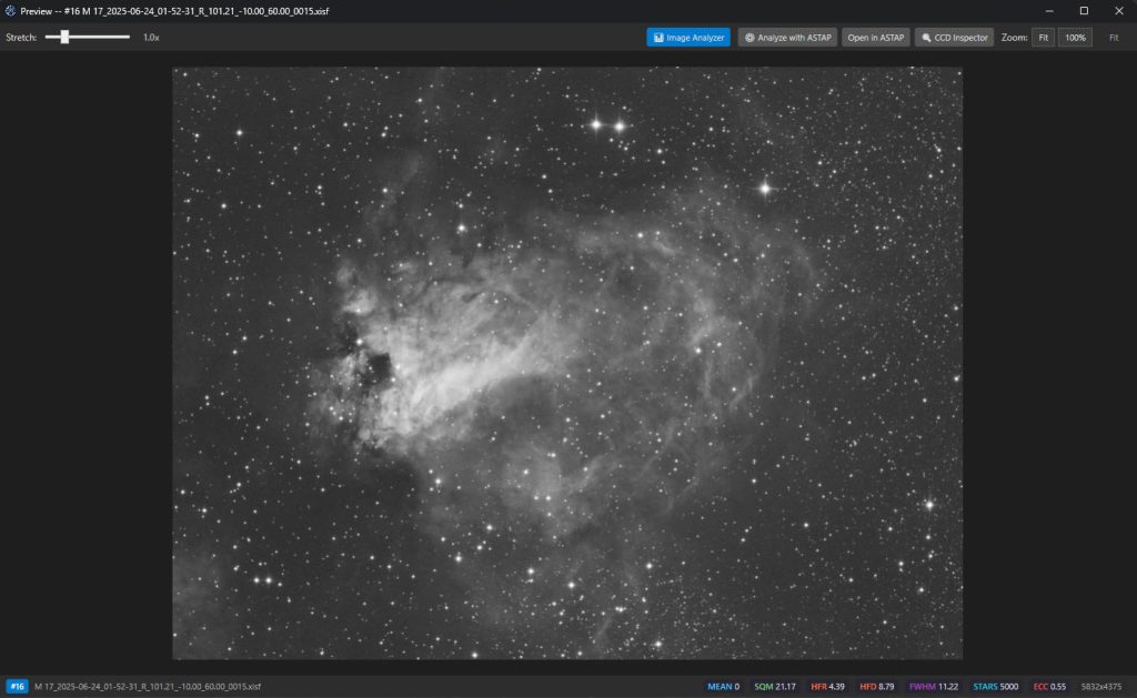 If ASTAP or CCDInspector is installed on your machine, hand the frame to either one.  Plate-solving or push to image analyzer for deeper analysis.
