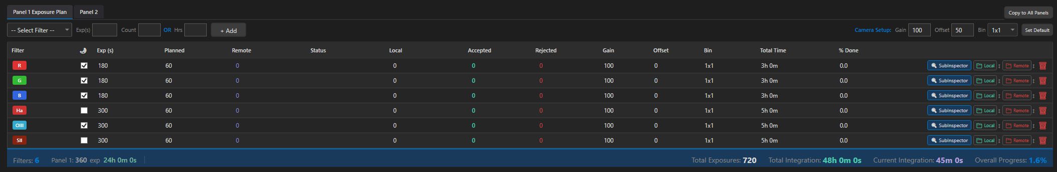 Every inspection flows back into the project it came from. Accepted and rejected frame counts show up directly in the exposure plan, so integration time always reflects what you’re actually keeping — not what the sequencer recorded.